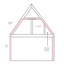 I’ve attached a photo of the front elevation as well as a drawing outlining how the home was insulated in the late 40’s. The pink represents fiberglass (or something similar) going along the exterior walls, and then up the rafters where they meet the attic floor joists. Those attic floor joist bays are insulated as well. Theoretically, this would have created a knee wall space that is essentially just as conditioned as the bedroom–but clearly it isn’t.