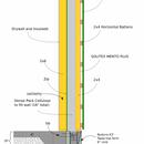 4. Outer framing of the double-stud wall is supported, without a thick plinth of foam that would extend beyond wall sheathing.