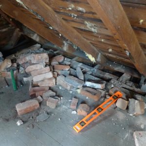 如果这是一个木结构的房子,而不是一个砖墙的房子,我会认为砖头和灰泥的安装是作为一个空气密封措施。砖头很可能是可以安全地移走的。然而,你要确保你的空气密封在这个区域的任何漏洞,可能让内部空气上升到你的阁楼。这种空气密封工作可能需要喷雾泡沫。