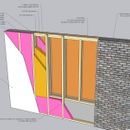 I’ve attached a photo of what it looks like currently – the previous owners built the “inner” 2×4 wall on top of the 8″ foundation for drywall attachment I guess and it was filled with a mere R13 of foil faced insulation with the drywall just glued to the 8′ foundation wall and the step down portion. For the rear wall that starts at this corner and goes off to the left they used R13 foil faced batts inside a 2×4 wall with the studs on their face (1.5″ deep wall).
