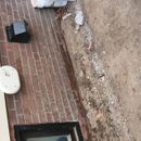 第二张照片中的沟槽表明该地区没有排水沟。我怀疑水滴落屋顶,溅在砖上。在我的地区,我最早的金属屋顶上有很多凝结,因为金属温暖,滴到地面。
