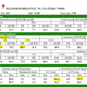另一件事是我认为我们的设计Temp是95.我们通常在95年以上每年有5天。每个人都受到震惊,因为他们认为它在这里更热。我们超过90岁以上超过30天(在30-40范围内的某个地方)。所以我总是认为95就是正确的。