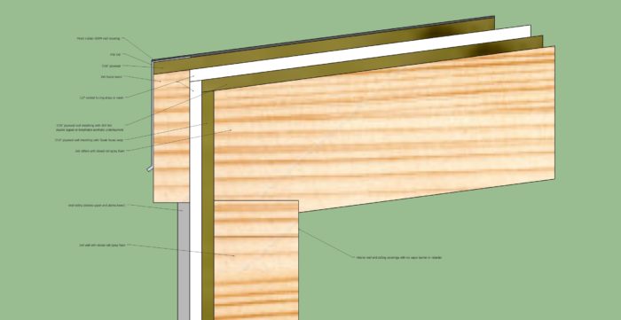 像这样的组装能行吗?我将有毛皮条垂直在屋顶和墙壁上允许1/2“的间隙为雨幕。主屋顶覆盖层将使用毡纸或透气衬垫,次屋顶覆盖层将使用EDPM。