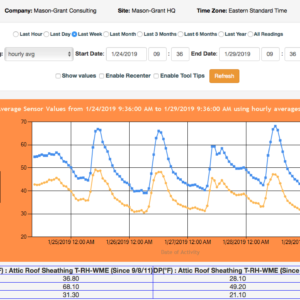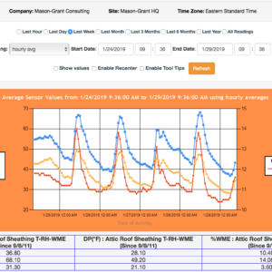 I’m tracking WME and Temp using Omnisense sensors on our newly constructed vented cathedral roof (16″ dense pack cellulose.)