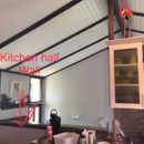 它在内部温度计的外部(80度)和75度是温暖的。屋顶整天都充满了阳光,所以它在那里很热。除了天花板和屋顶之间的绝缘和靠近屋顶峰值的梁之间的绝缘是没有的。