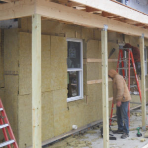 The lower photo before shows a different approach -- one taken by Mark Yanowitz. (Mark's blog is here:Wrapping an Older House with Rock Wool Insulation.)