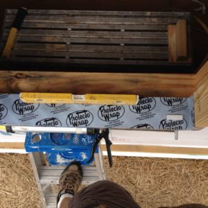 I ripped 2x material down to 2" (in retrospect would have ripped down to say 1 7/8 to allow for the slight compression of Roxol). Then flashed the opening with Zip flex tape along the bottom, and regular Zip tape and GTape along the sides and top. Along the bottom, you can actually save some money by just using the Zip flex tape in the corners and use regular tape in the middle section of the bottom.