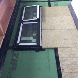 I decided on Zip sheathing as the primary air barrier and WRB. Thus all flashing of the openings was against this surface, not the surface of the 2" Roxol we installed. You can follow the same approach with traditional house wrap I believe.