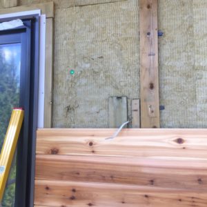 4) The window can now be removed and replaced without disrupting the mineral wool, the furring strips, or the siding. You just have to remove the exterior window trim.