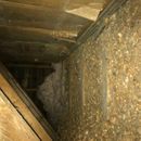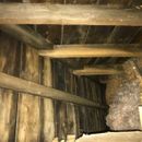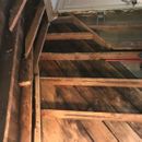 我开始从里面锻炼小的第二个故事。我打开了一些墙壁来发现几层墙纸,其他纸/纸板产品,几层石膏和螺柱托架,以含有大规模定居的木屑。Shiplap Plank护套缩小了各种板之间的大差距,露出墙壁外部和屋顶上的粘性屋顶衬底之间的沉重毛毡。膝盖墙只有1.5英寸的刨花。小阁楼有一些蓬松的岩石羊毛,并没有发泄。