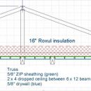 我联系了Huber Engineered Woods LLC,想在阁楼地板上使用ZIP护套,然后把它粘在ZIP外墙护套上,以便在主地板和阁楼之间创建一个气密的外壳。我解释说阁楼是通风的,将有16个″的Roxul Comfortbatt坐在ZIP阁楼地板覆盖层的顶部(屋顶负载将由桁架支撑)。